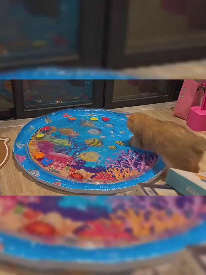 Características: Material: PVC resistente, seguro e atóxico | Superfície macia e confortável para patas delicadas | Design inflável, leve e fácil de transportar | Estampa colorida com peixinhos móveis que despertam a curiosidade | Pode ser usado em ambientes internos e externos